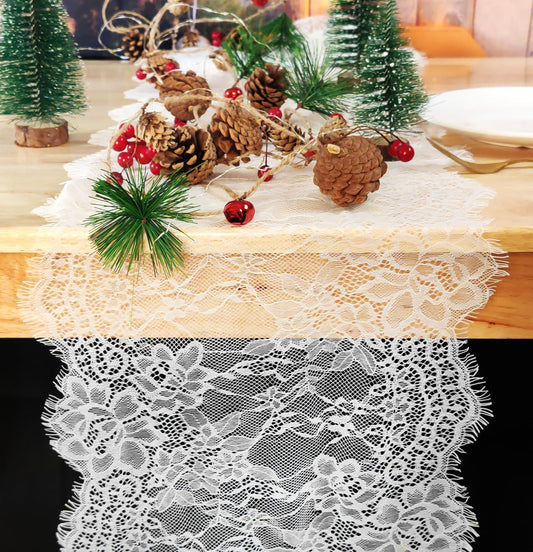 3 Pcs White Lace Table Runner 14 x 120 Inch Embroidered Boho Table Runner for Wedding Party Bridal Shower Decorations Vintage Rustic Table Runners
