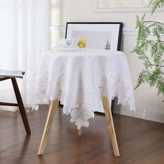 Cream White Lace Flower Embroidery Small Square Tablecloth Rustic Wedding Party Home Kitchen Cabinet Bedside Table Decorations 35 x 35 Inch