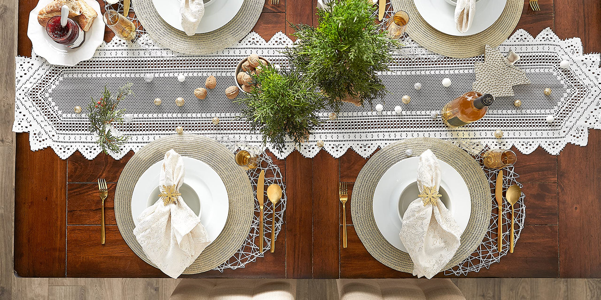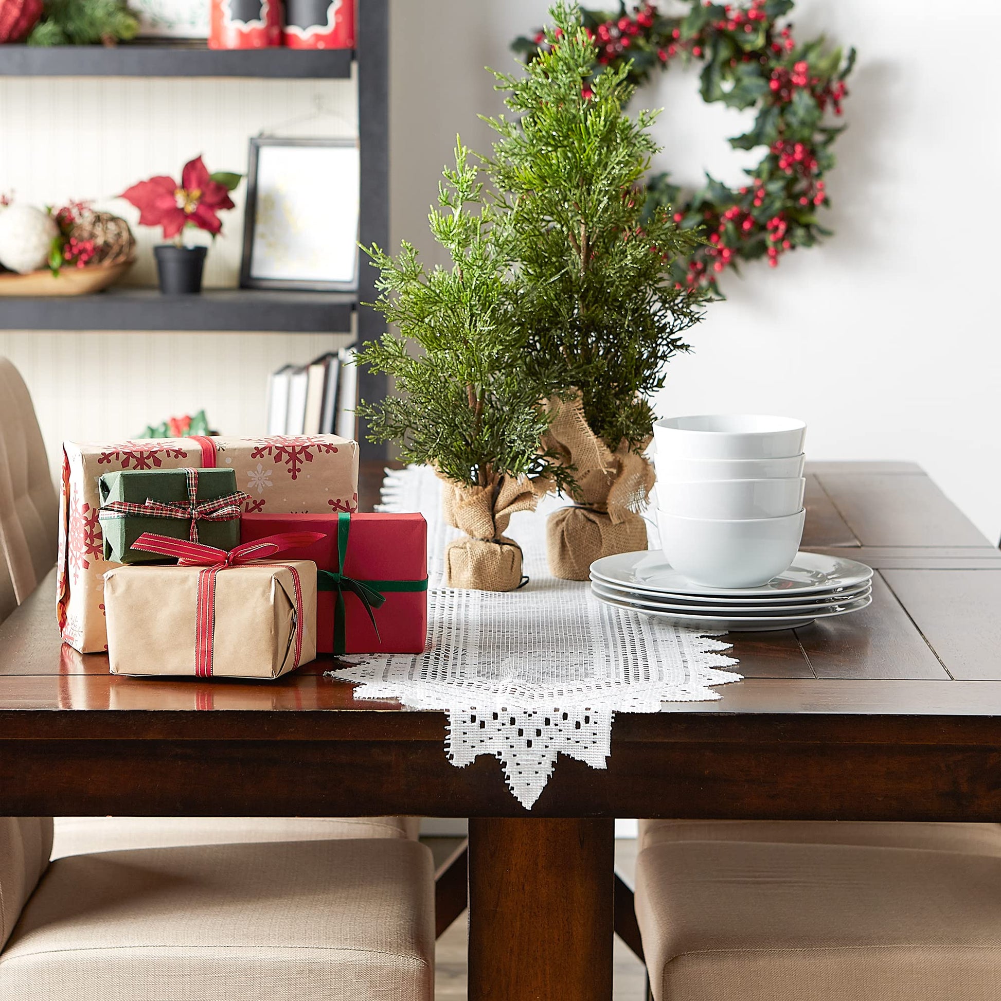 Create a shabby-chic or vintage look for your table with these fun lace polyester tablecloths. These tablecloths look great over a solid color tablecloth, like DII's spun polyester, or on their own. The lace will look beautiful over your table for your upcoming afternoon tea party. They are also perfect for baby showers, weddings, wedding showers or everyday use. Check back for new designs. These tablecloths are sized slightly smaller than DII's other tablecloths, in order to create a perfect overlay. Find DII's full selection of colors & sizes by searching for DII Lace Tablecloth.