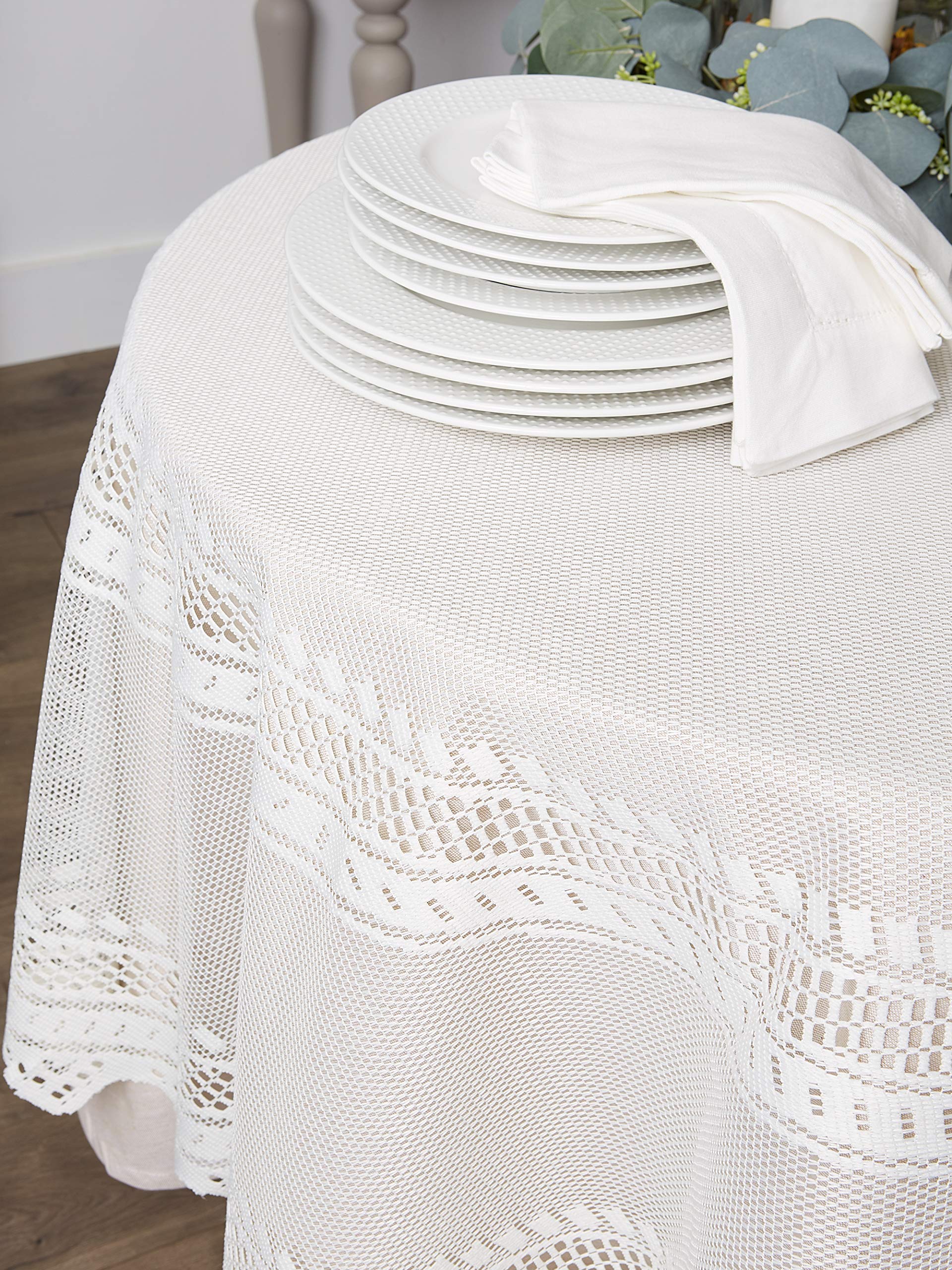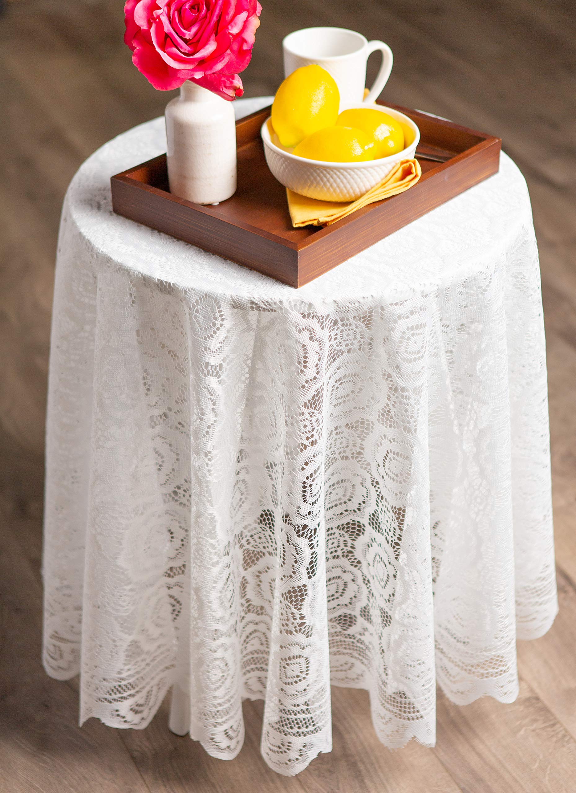 DII Home Essentials 100% Polyester, Machine Washable, Shabby Chic, Vintage Tablecloth or Overlay 63" Round, Floral Lace