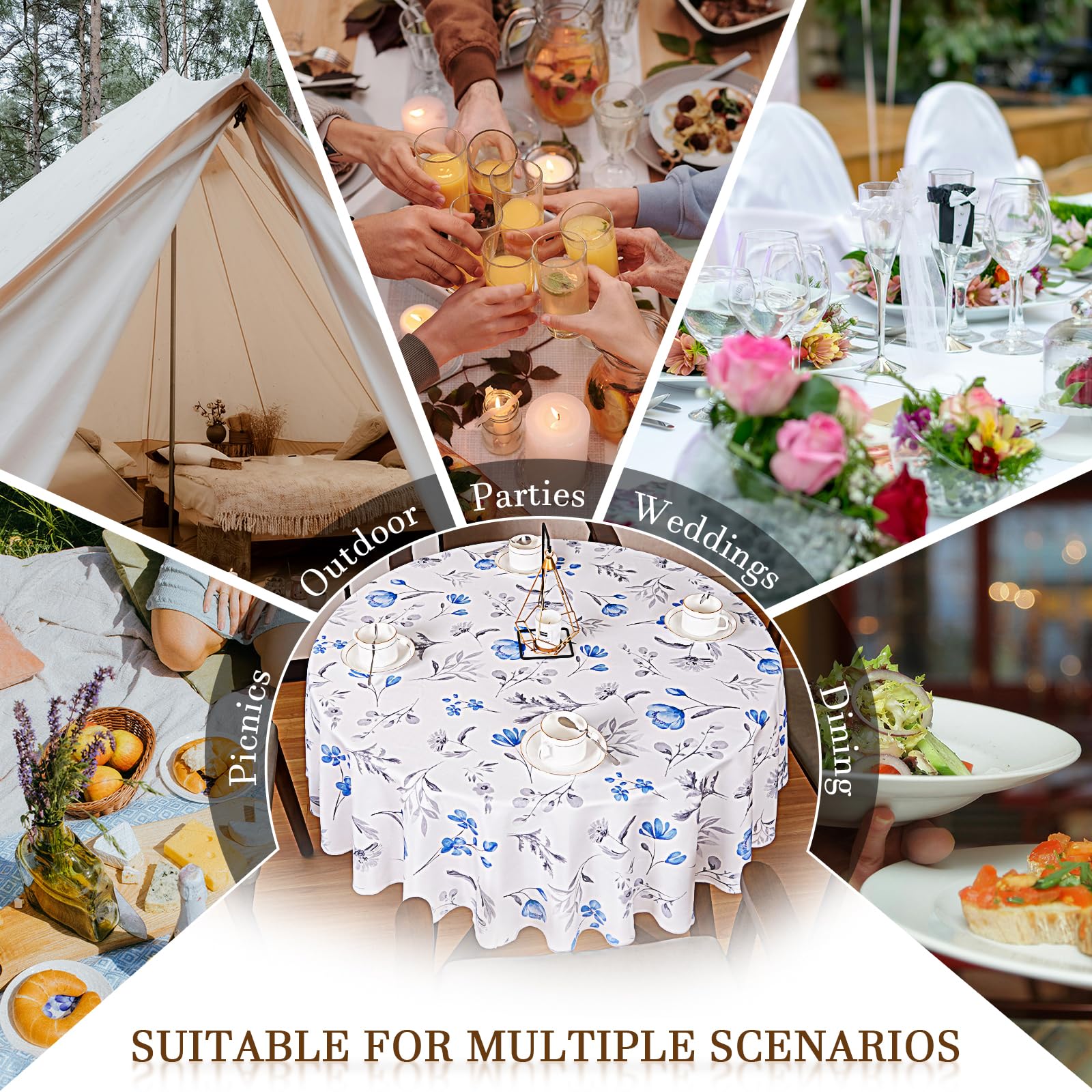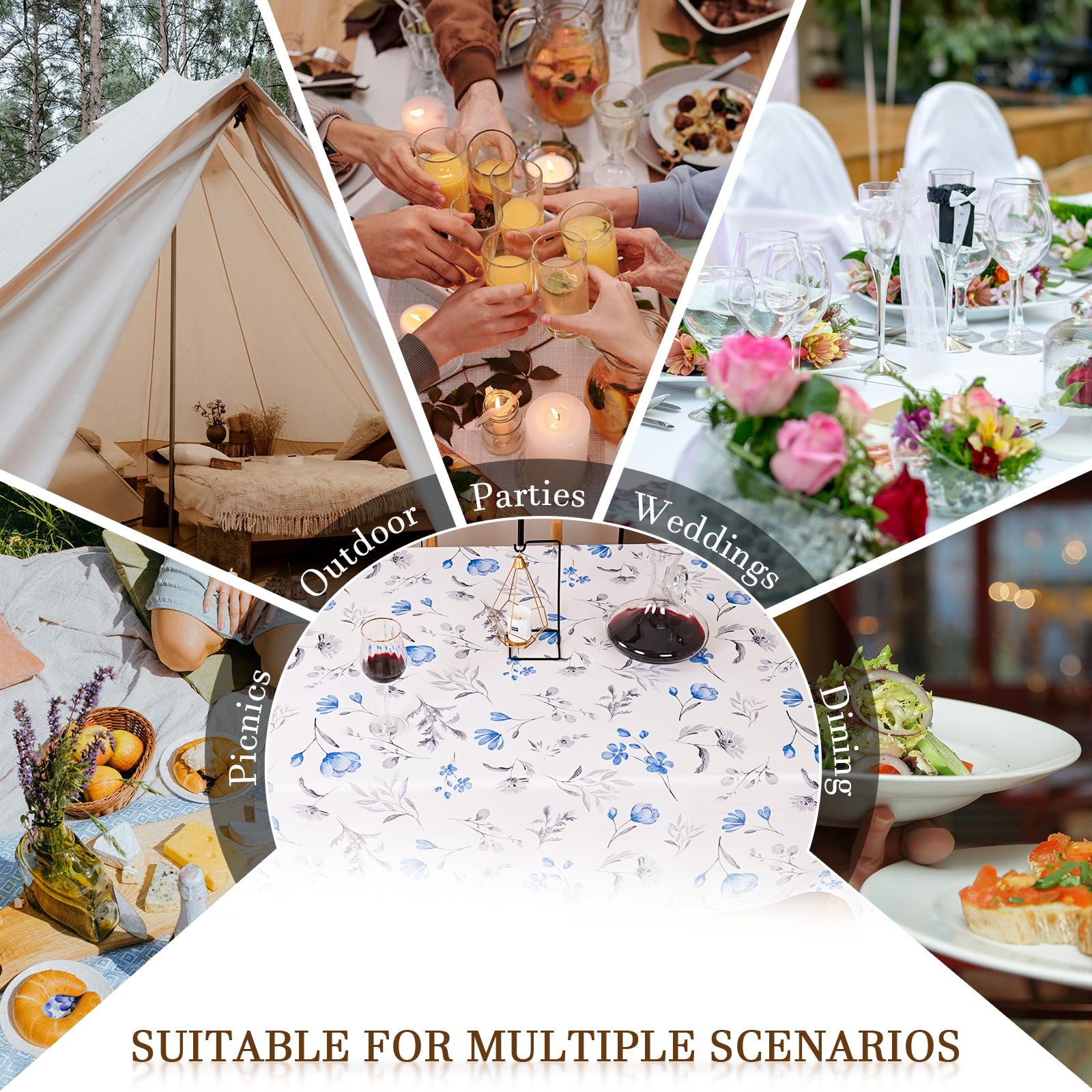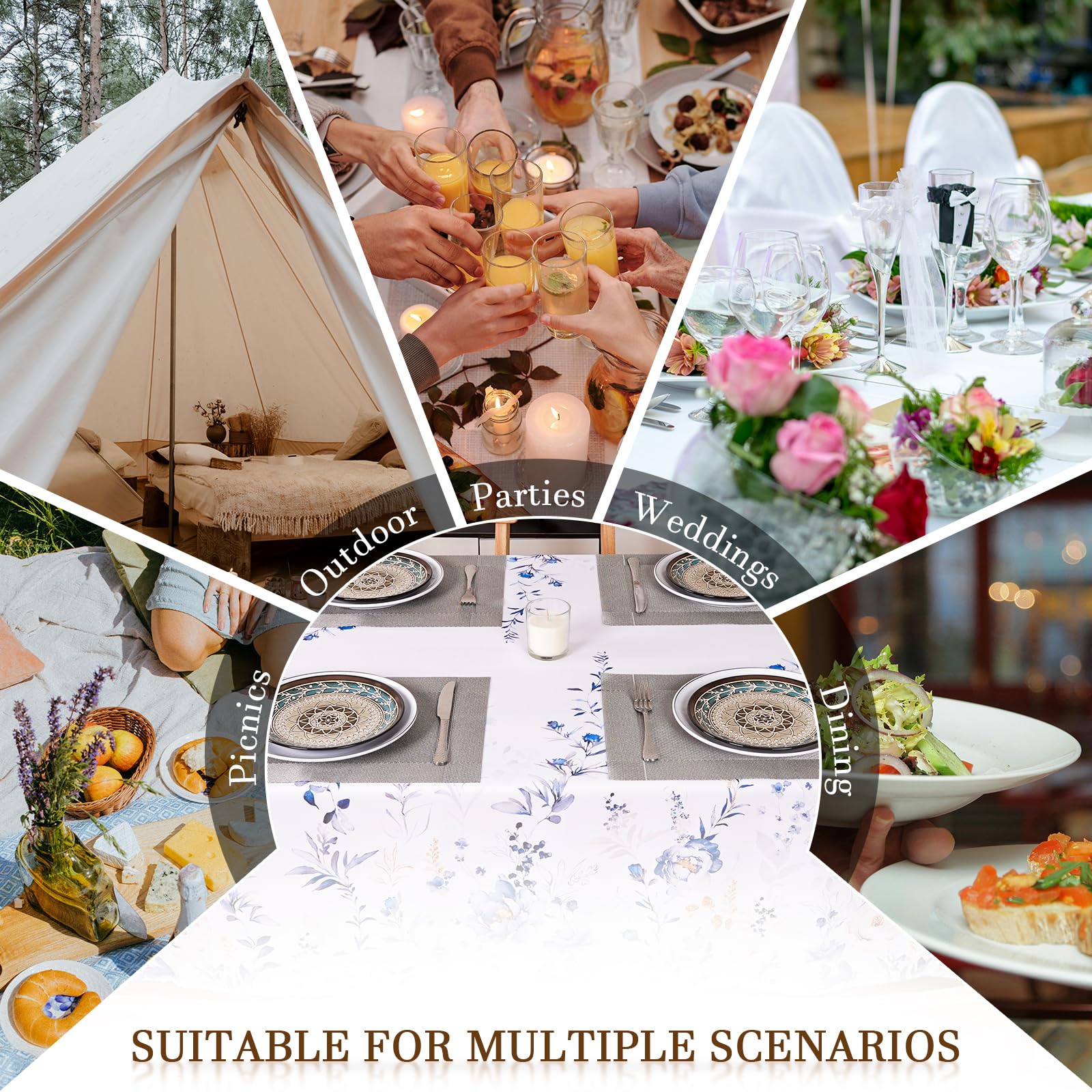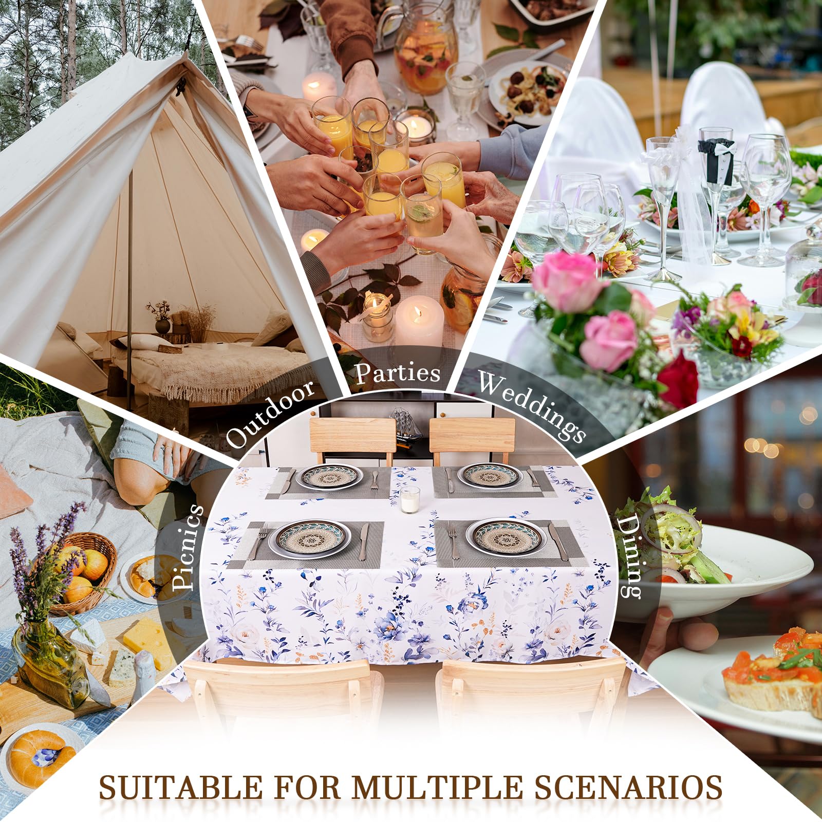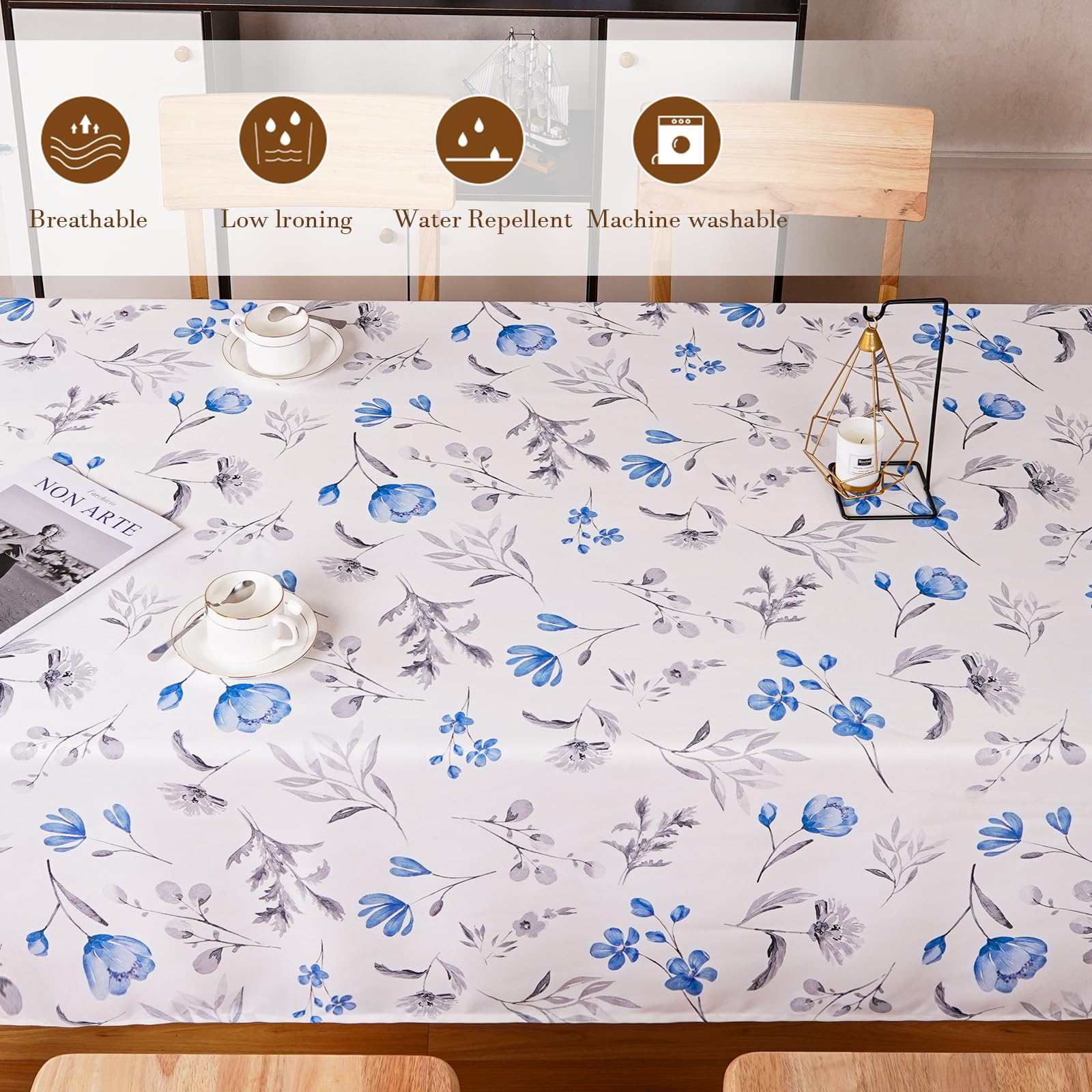 Soft & Smooth FabricBlue floral tablecloth Anti-Shrink Table Cloth Tablecloths Wrinkle-free Soft Smooth Fabric, TableCloth for Parties in Halloween, Thanksgiving, Christmas Holiday Decor. |